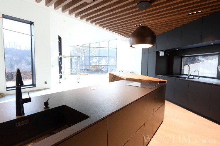 싱크볼은 블랑코 블랙, 수전은 한스그로세와 KWC 제품입니다.