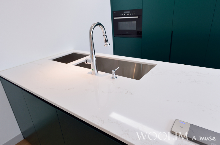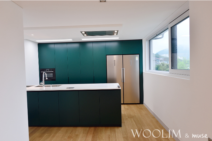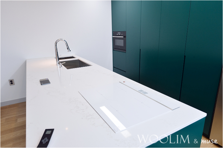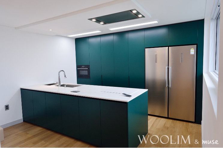 11자 형이며, 도어는 우레탄 도장, 상판은 칸스톤입니다.